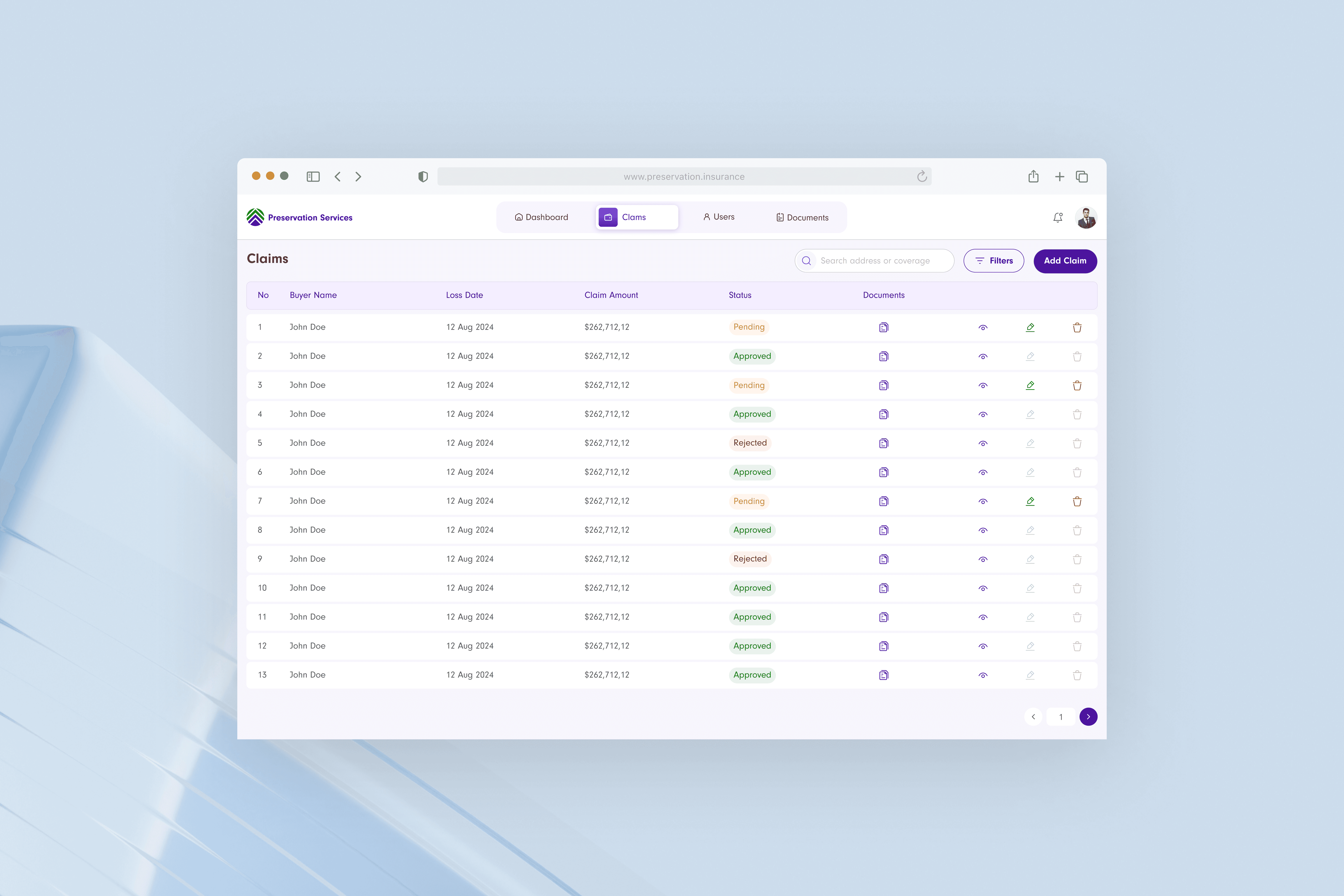 Each claim is designed as a single, unified view containing all relevant information, updates, and documents. This ensures users can track and manage claims without switching contexts.