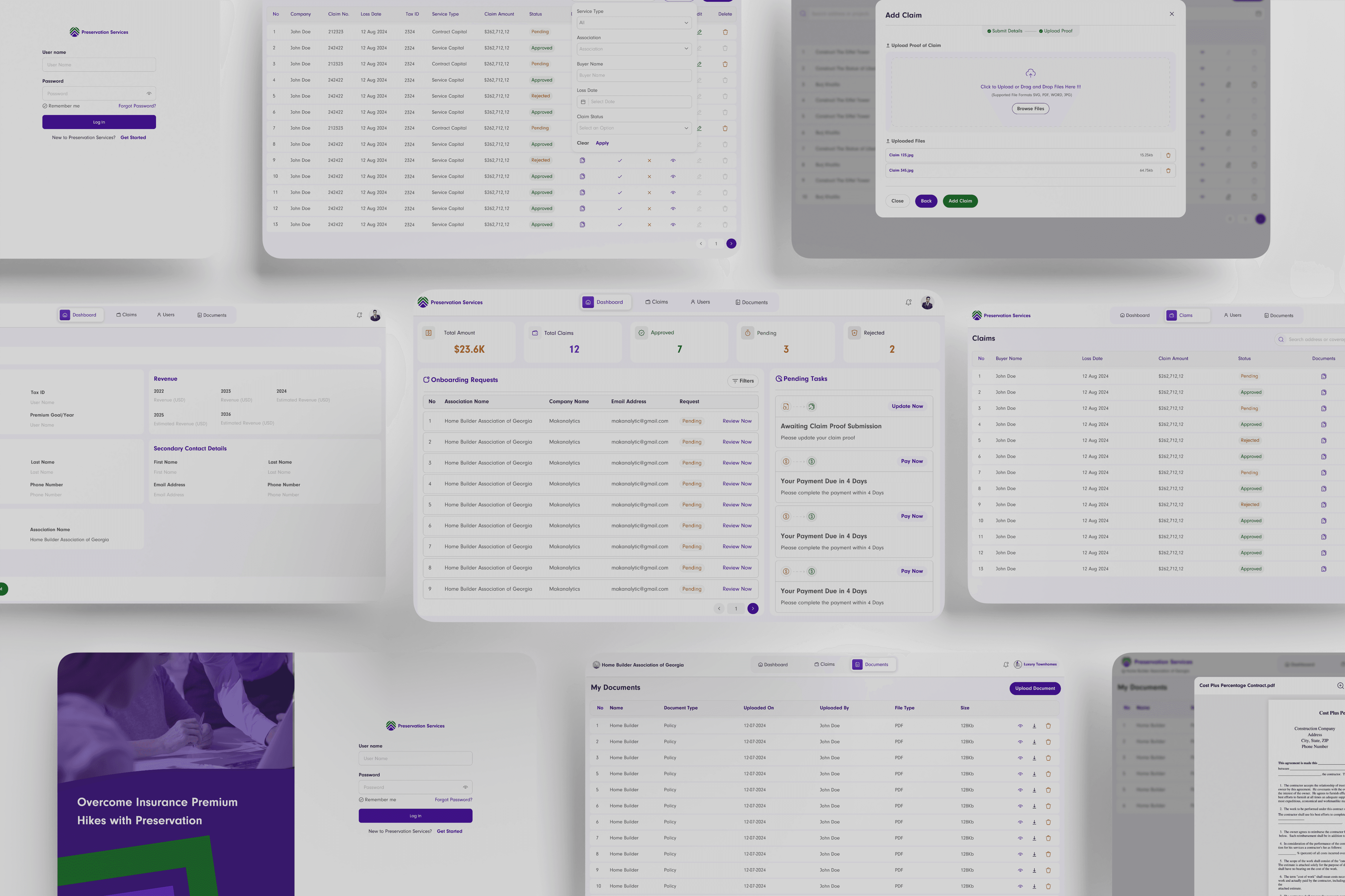 Designed a claim management system from scratch to support how building contractors and internal teams manage commercial insurance claims. The system brings structure to how claims are tracked, reviewed, and processed, improving visibility across stages and enabling faster, more reliable execution.